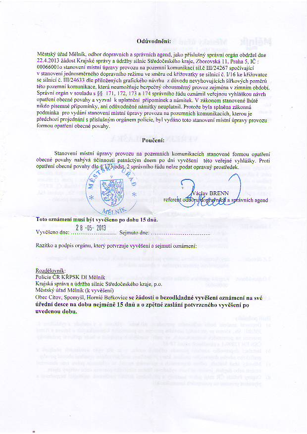 MÚ Mělník Veřejná vyhláška opatření obecné povahy