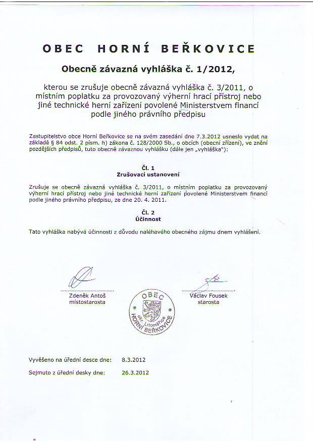OZV 2012/1 kterou se zrušuje OZV 2011/3