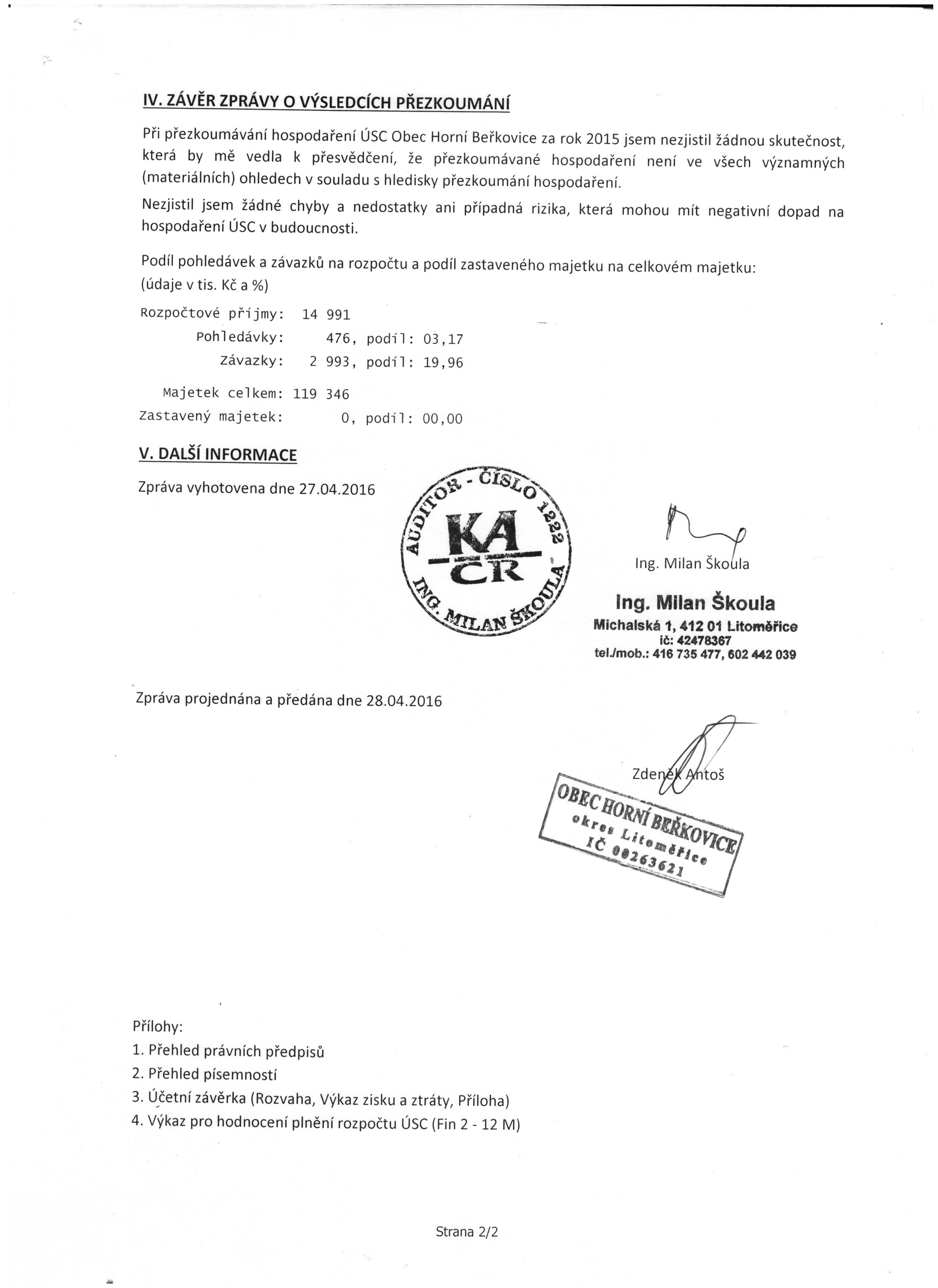 strana 2 přílohy k návrhu závěrečného účtu za rok 2015